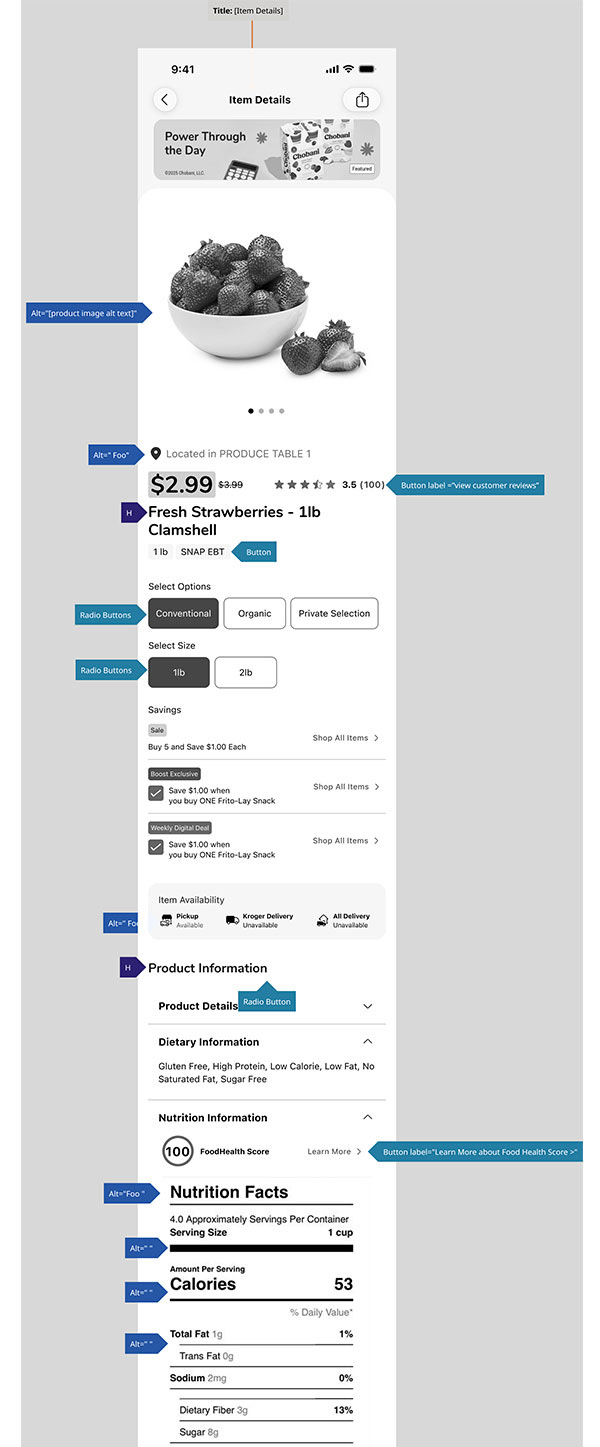 When the Product Details Page (PDP) was added to the list of core updates for MVP, the tiger team brought me in as the subject matter expert, and I was tasked with bringing presentation concepts to life and better reflect what could realistically be built by the handoff deadline in 3 weeks.