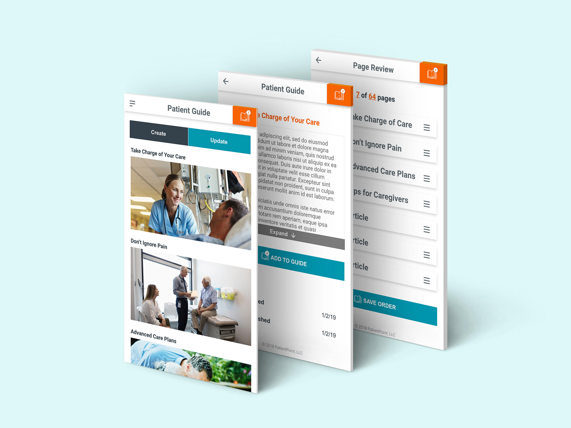 The last functionality walkthrough shows how an external user (ex-someone from a hospital marketing team) would navigate through updating content to be featured in their patient guides (patient guides are take-home booklets given to patients being discharged from the hospital). The user is able to select the articles they would like to add to the guide, preview the article, arrange them in the order of their choosing, and then select their color, layout, title, and additional messaging before sending to our production team for review and publishing.