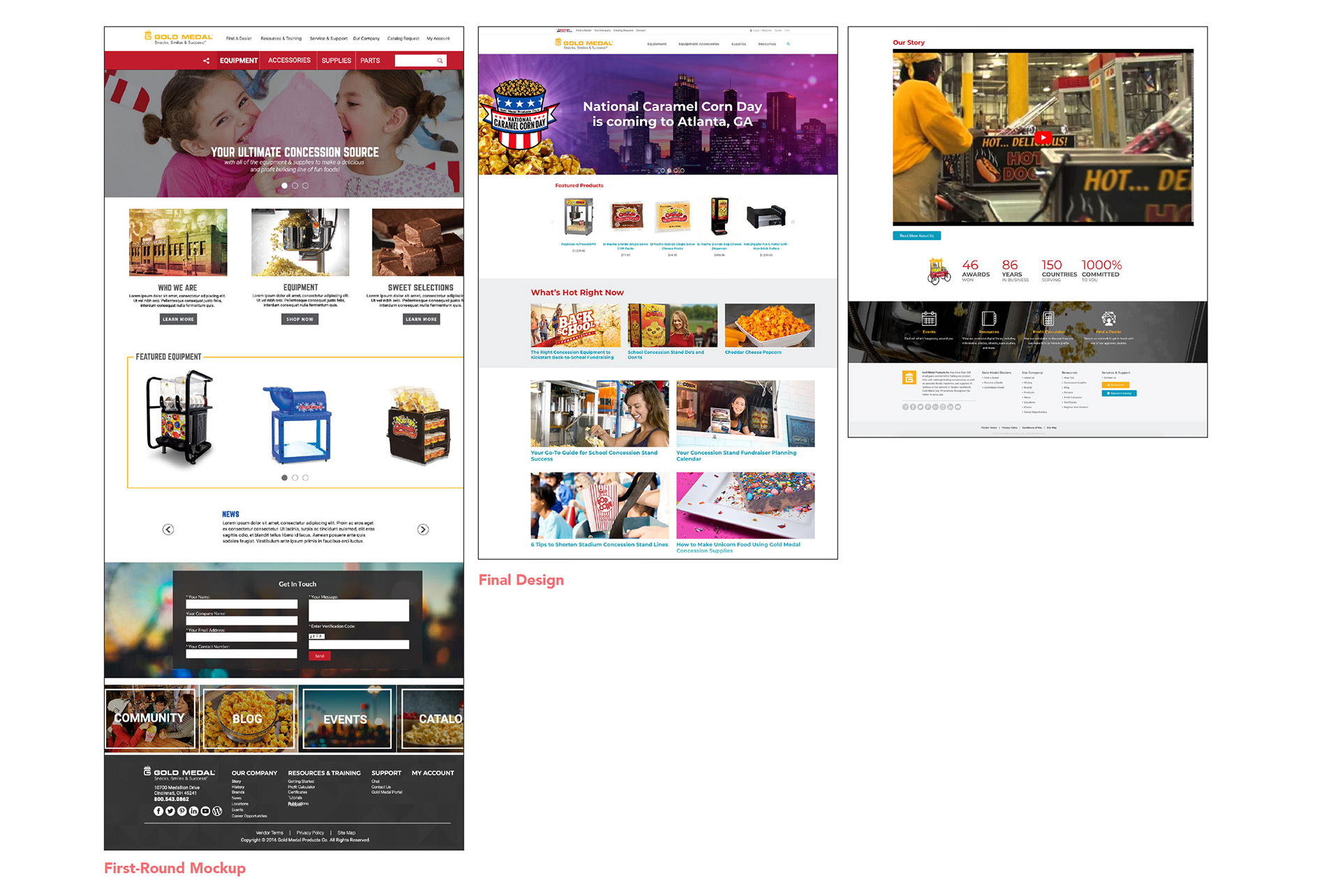 So in addition to my role in assisting with the overall design, I also really focused in on figuring out a new design for the navigation. Gold Medal has multiple target audiences accessing their page, and most of their customers were a bit older.
