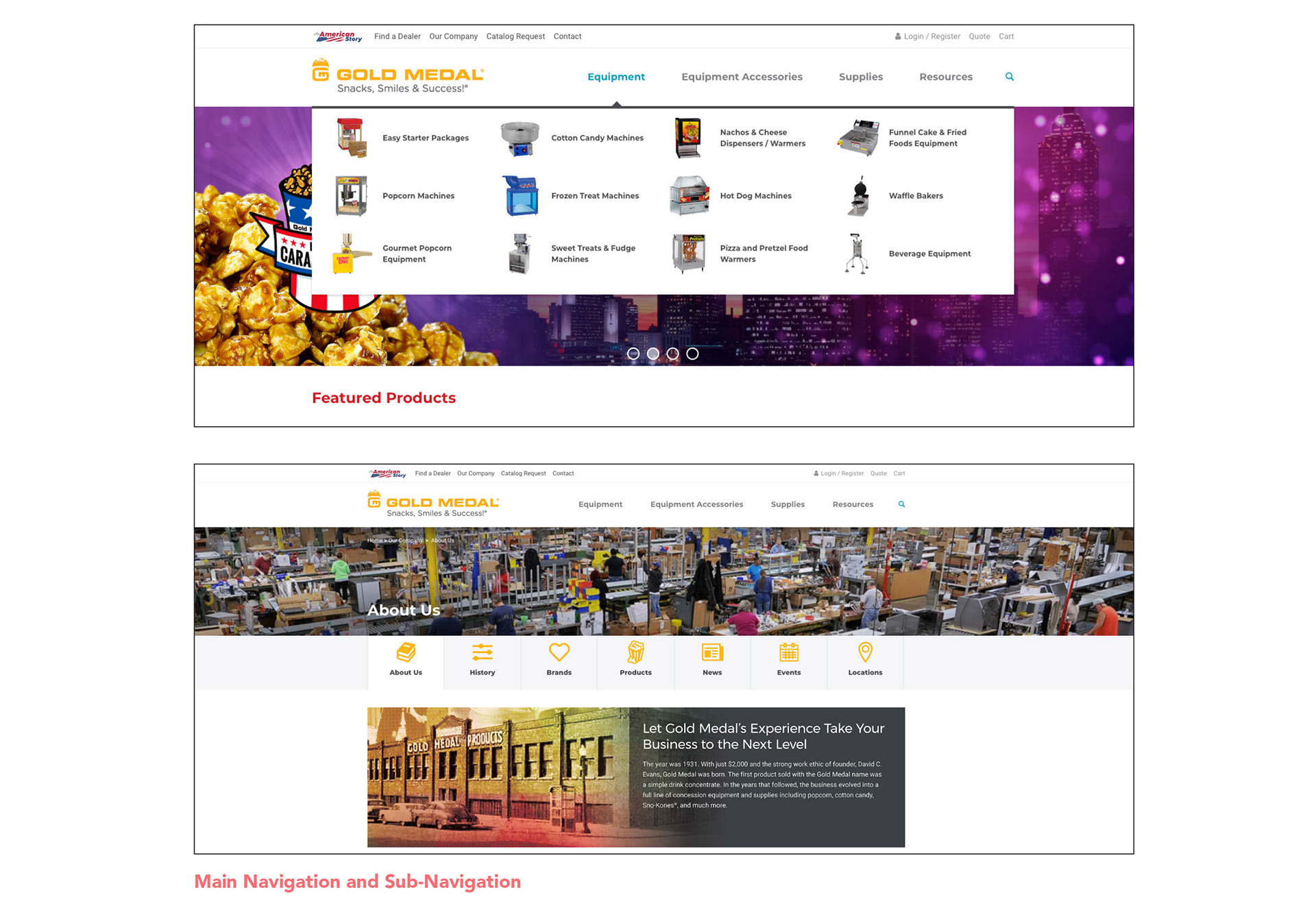 The new site navigation used a horizontal style and instead of just listing text, we decided to use images due to our older target audience. This allowed Gold Medal's products to be easily found and would easily lead customers to purchase.