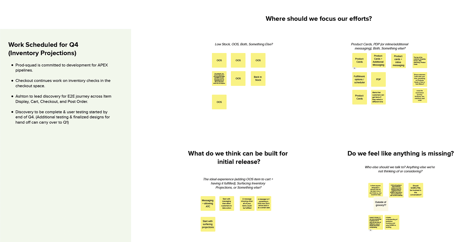 Over the Summer in 2024, several teams were brought together for a large in-person discovery session around the customer & business paint points around our inventory experience from the back end balance on hand data to the front end experience that our customers see.