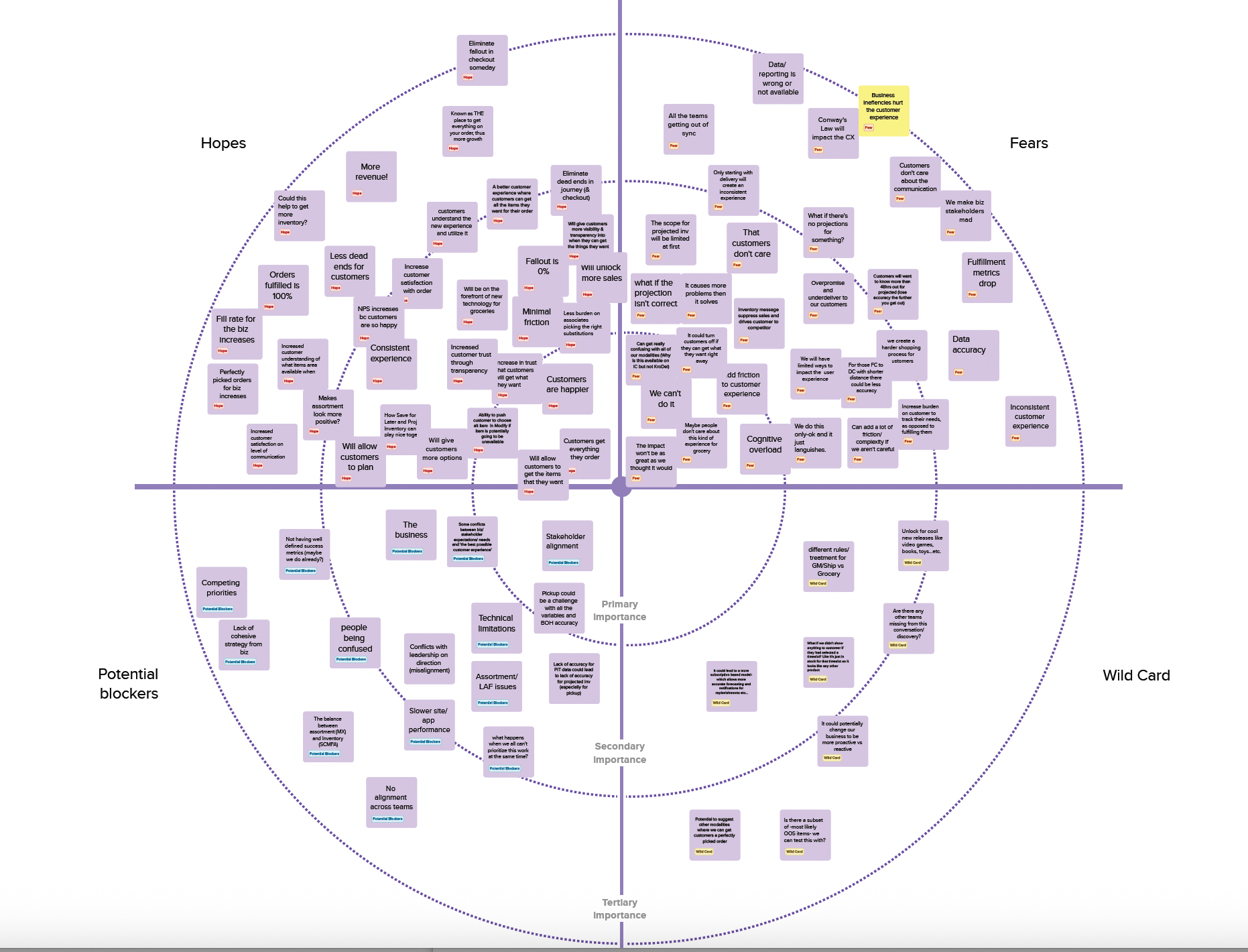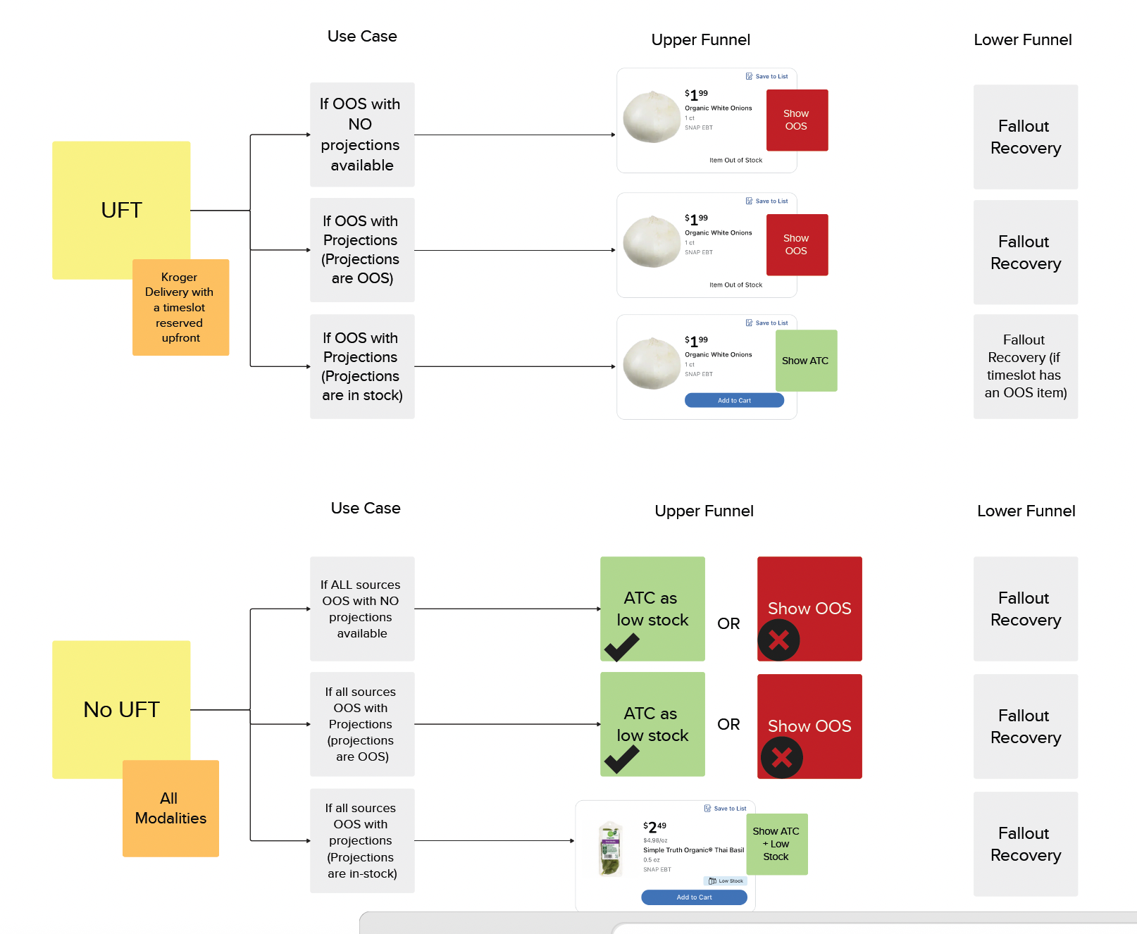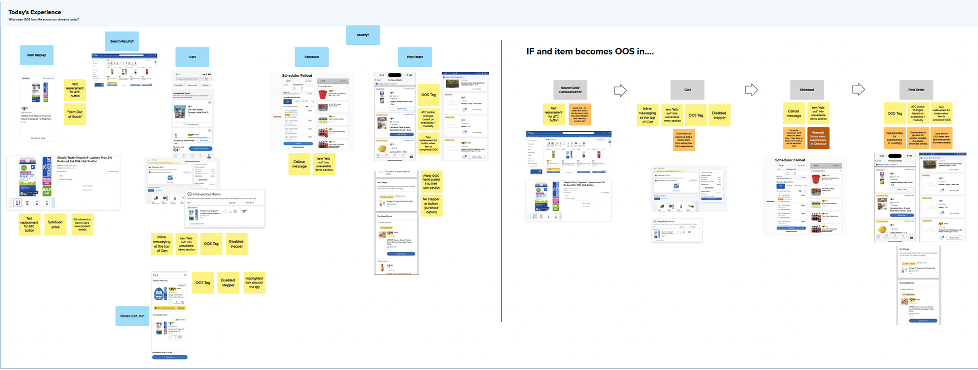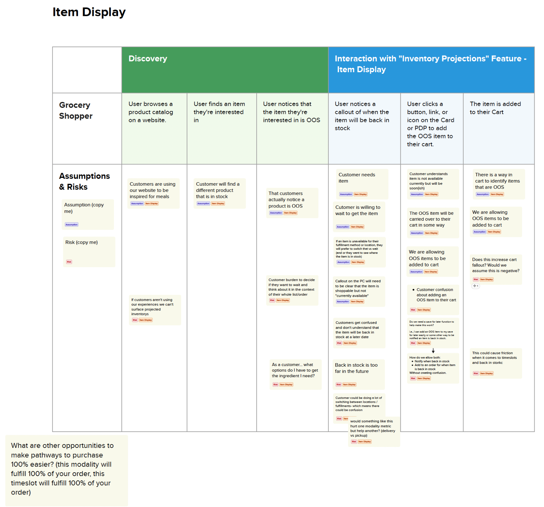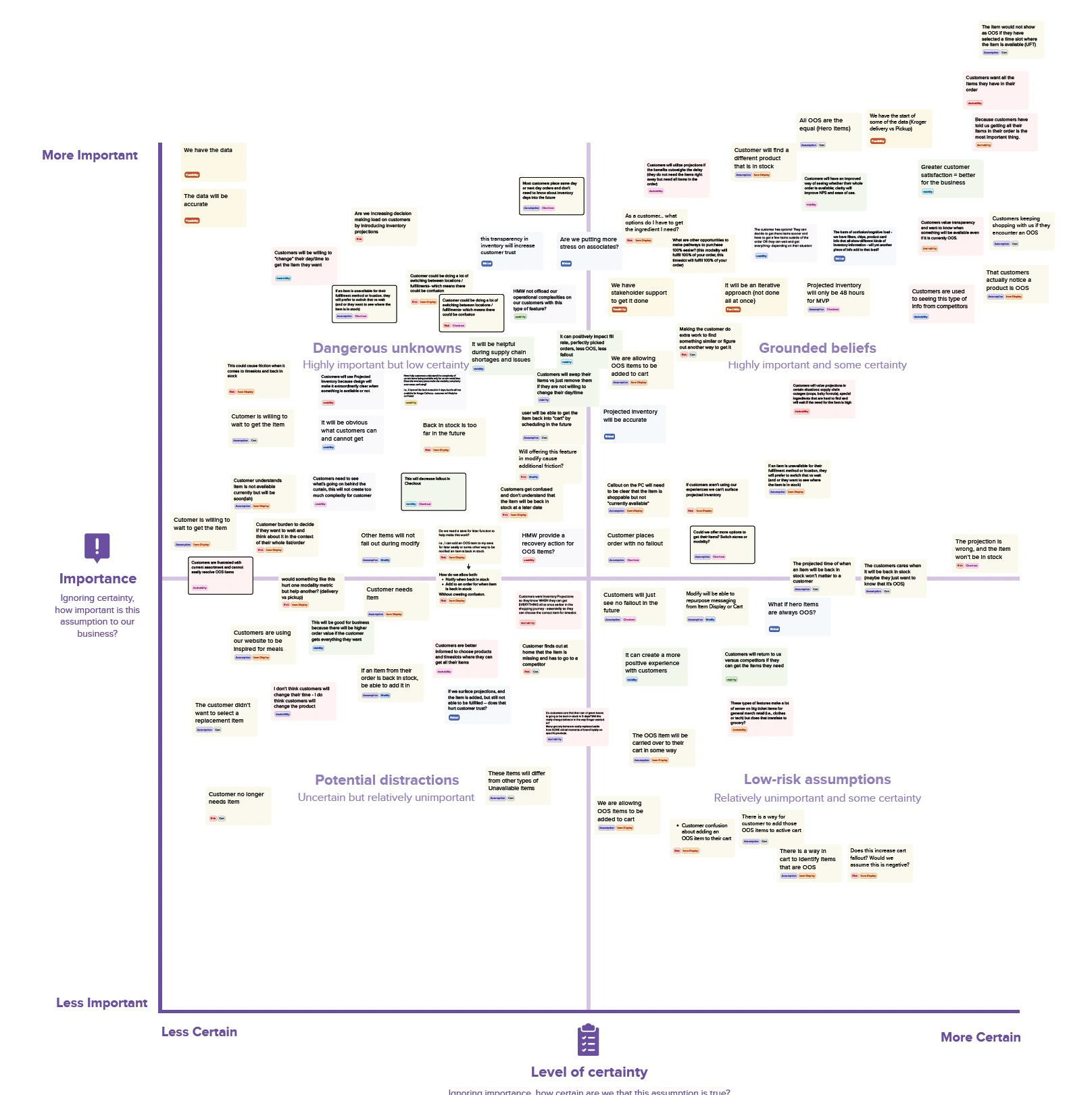 With the focus on Out of Stock items on the front end experience -- our next session we spent some time looking at our current OOS experience, journey mapping with an OOS item lense, & assumption mapping around OOS items.