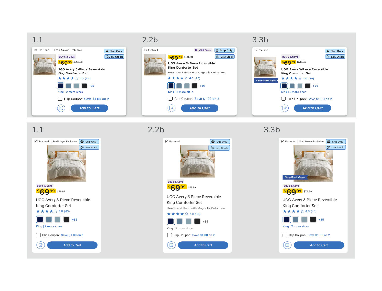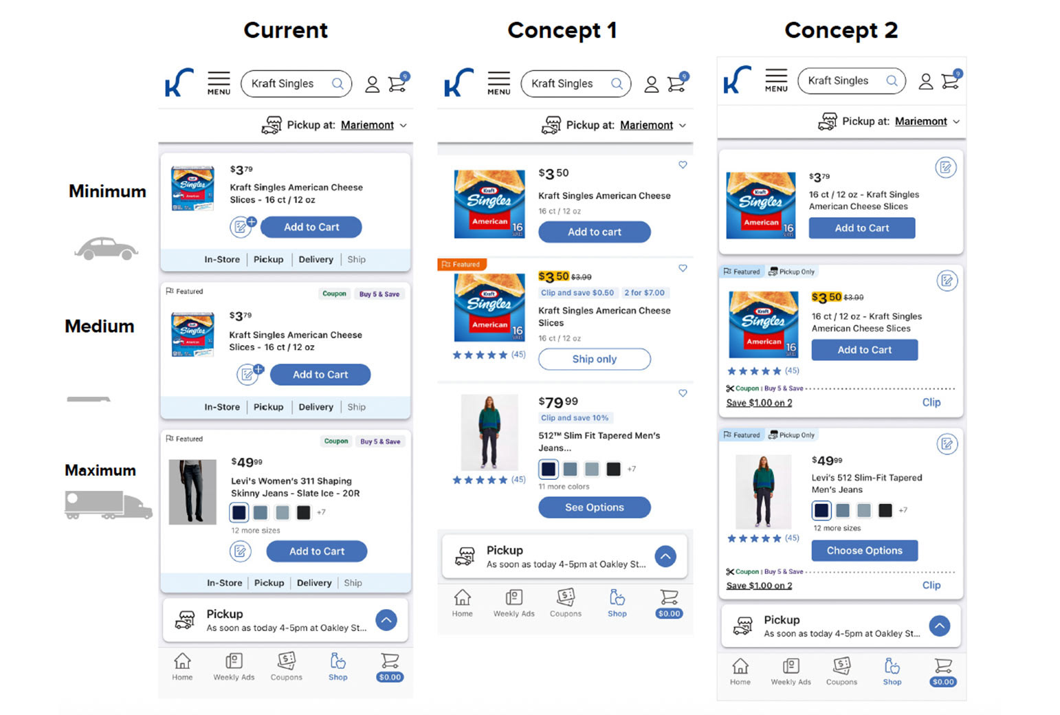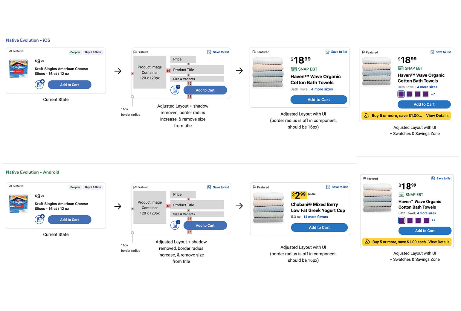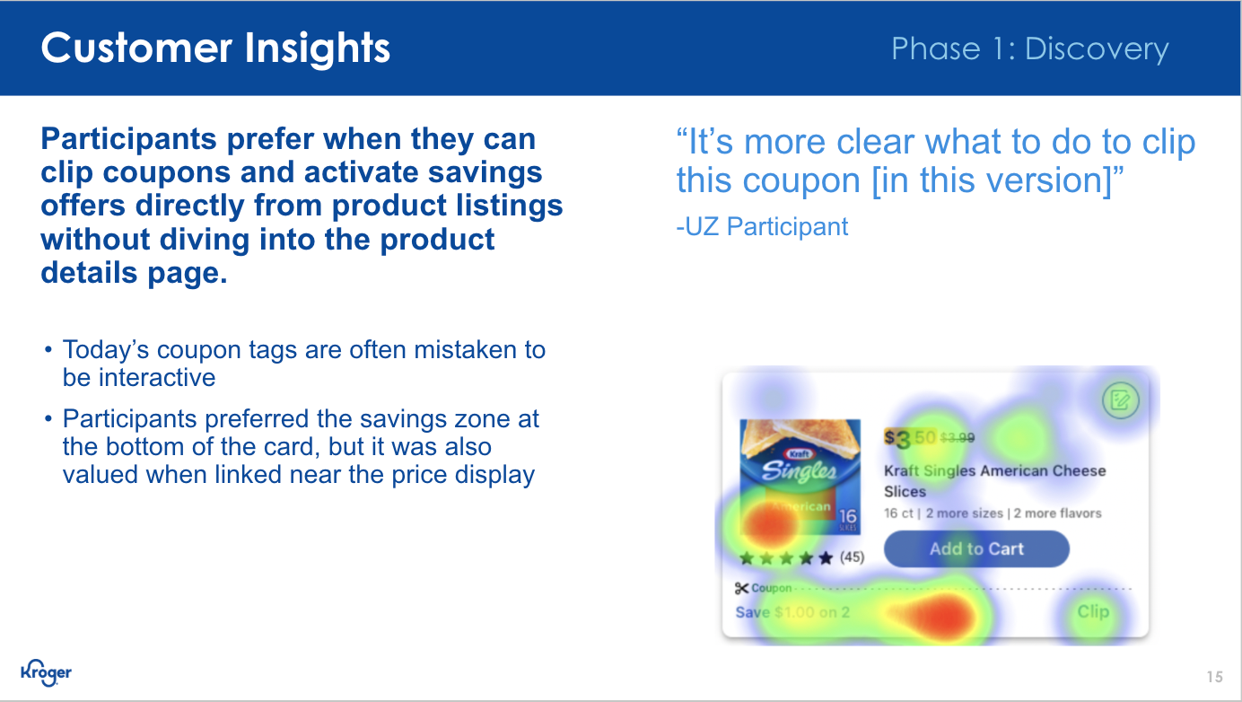 Both Web (Desktop & Mobile) and Native received the various updates we highlighted. With the previous mockups having already gone through usability testing, we focused on refining UI elements so that they better aligned with Kroger's overarching design system and patterns.