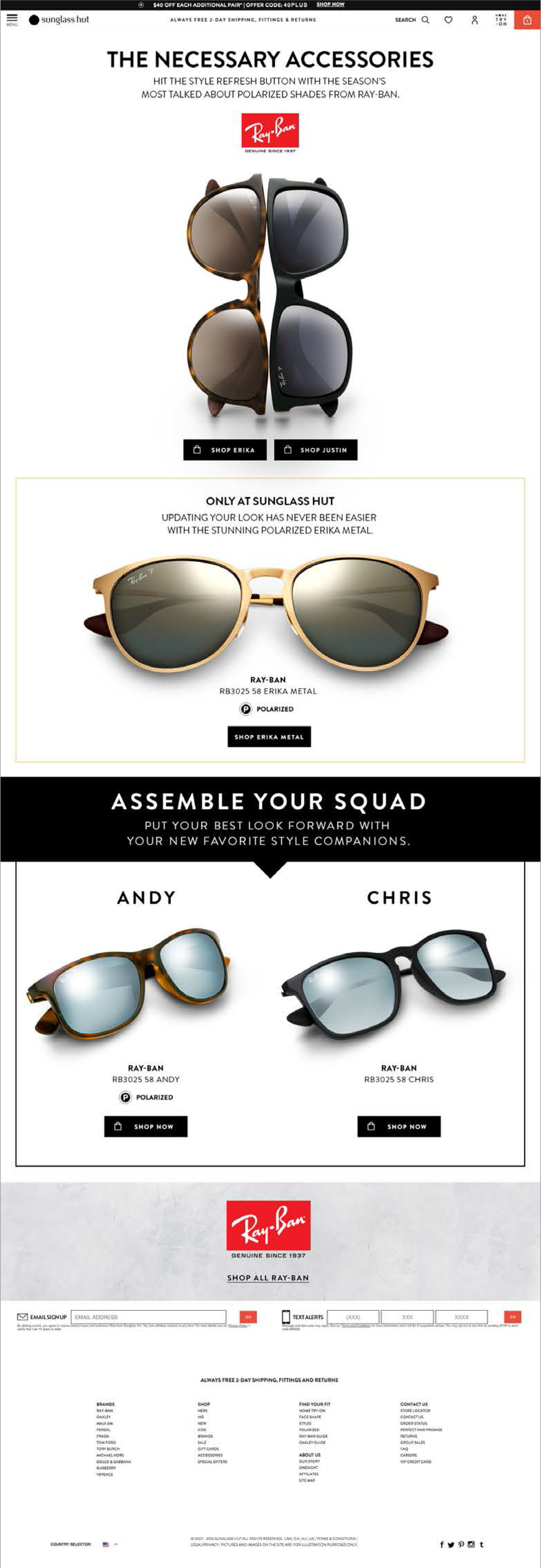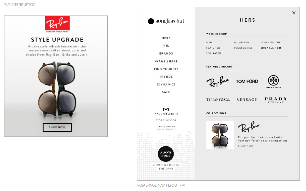 This was a summer 2016 campaign for the Ray-Ban Youngster collection--with special call outs to the Sunglass Hut Exclusive Erika Metal frame. The campaign included web and mobile banners and landing pages as well as a targeted email campaign.