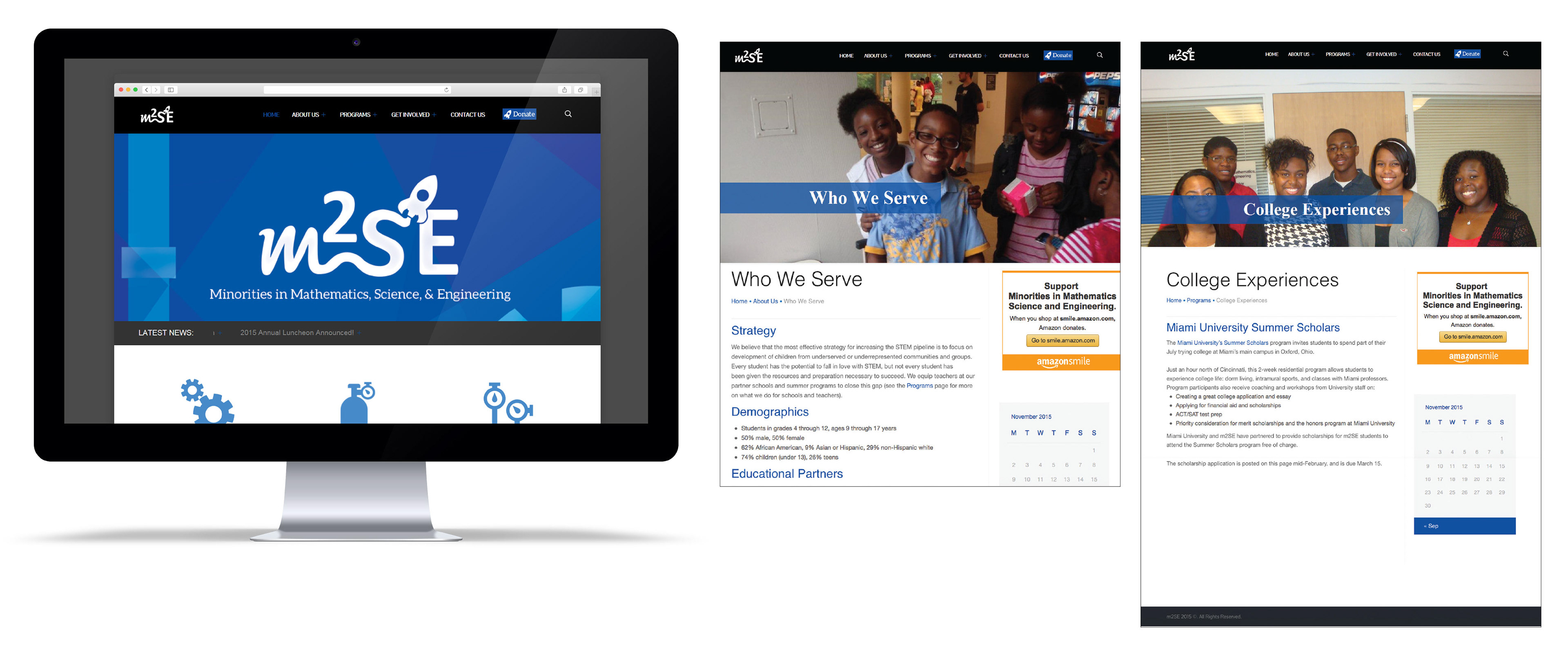 Design mock-ups for local non-profit M2SE who focuses on STEM education programs for youths of low socioeconomic backgrounds and racial minorities. Use new branding materials when implementing graphics and overall look and feel to the site. Keep in mind that their overall goal is to increase awareness and receive more donations to their program. Collaborate with a developer to design and code the new site using WordPress. Make refinements to the design in order to push the brand forward and to make sure that the site proves its legitimacy. Make the site easy to edit and update for the employees of M2SE once the project has been passed down by making content and images easily accessible.